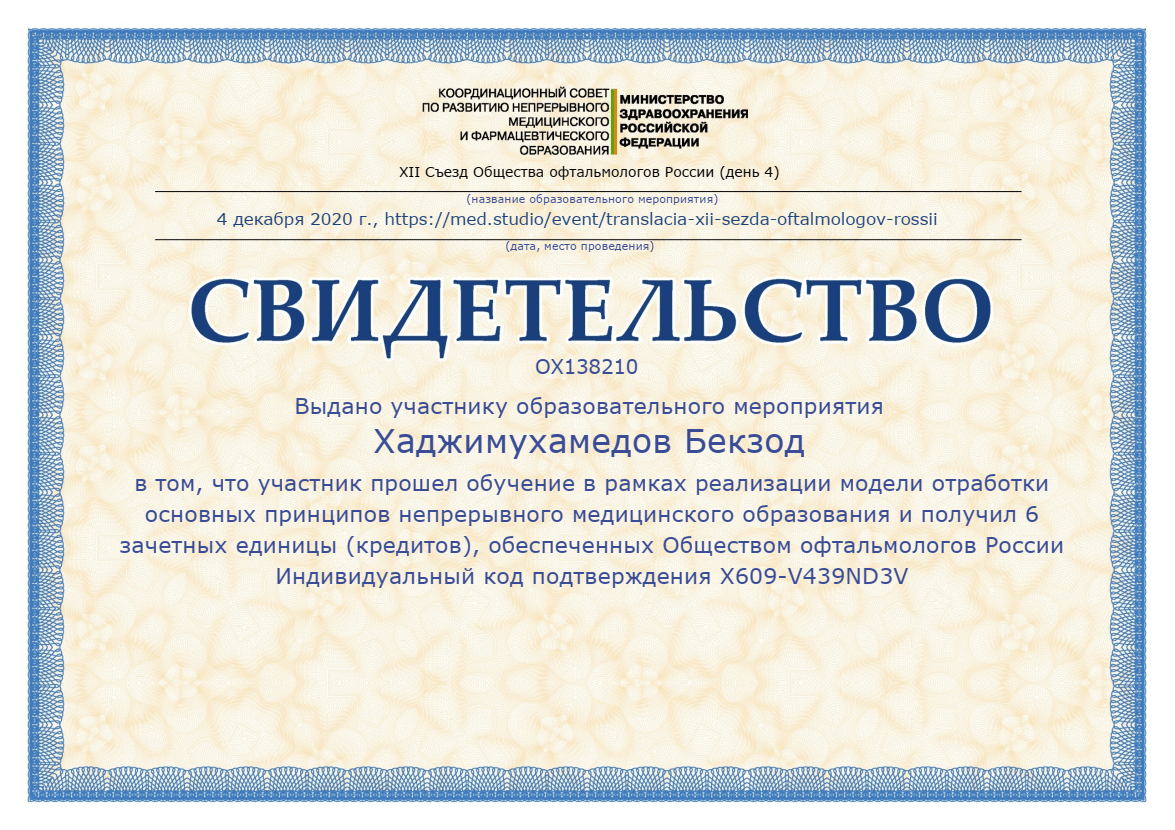 2015-2018 гг магистратура на кафедре офтальмологии, детской офтальмологии, Ташкентский педиатрический медицинский институт